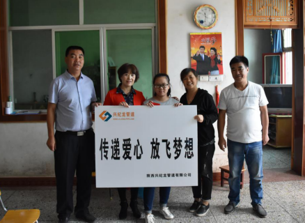 在社會經(jīng)濟飛速發(fā)展的今天,許多城市中的孩子過上了幸福美滿的生活,可是在我們周圍仍然有很多貧困兒童。目前,我國1.62億在校中小學生中,有上千萬的貧困學生,甚至每年有約200萬學生因家庭貧困而輟學,導致貧困狀況在幾代人中延續(xù)。愛心無止境、愛心在身邊,傳遞愛心 放飛夢想,在公司不斷發(fā)展壯大的同時,作為管道行業(yè)領(lǐng)先企業(yè),陜西興紀龍管道有限公司,以感恩的心態(tài)回歸社會,自2014年5月份開始,經(jīng)興紀龍管道的全體員工一致表決后,開始實施每年拿出一分部資金用于愛心助苗活動。截止到2017年9月份,我們已經(jīng)成功開展4屆愛心助學活動的條例,累計扶持幼苗:34株,累計捐出助學款項26500元。2017年9月4日,陜西興紀龍管道有限公司一年一度的愛心助苗活動如約而至,我們依舊帶著我們的愛心之力開啟我們的助學之路讓更多的孩子享受學習和生活的快樂。