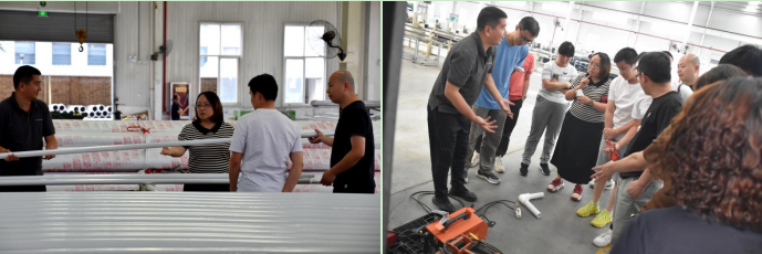 在蘇副總、何總及設(shè)計總監(jiān)付曉娟的帶領(lǐng)下,一起從產(chǎn)品原料--擠出--復(fù)合--包裝--連接等方面進行了全方位的講解和現(xiàn)場實驗,讓各位zhuan家能夠?qū)嶋H的去感受科技的力量,更直接的能體會到陜西興紀(jì)龍管道股份有限公司在產(chǎn)品的生產(chǎn)、研發(fā)及品質(zhì)管控等各個方面的認真、執(zhí)著及科學(xué)嚴(yán)謹?shù)膽B(tài)度。